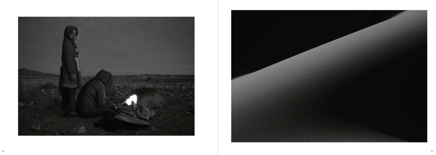 目をうばわれる風紋の造形、砂漠のライン、光の表情、遊牧民ノマドの日々、広大な空間。いずれもダイナミックでありながら、写真からは静謐な佇まいが感じられます。砂漠の温かさと寂しさ、美しさや怖さ、不変と変化を同時に感じる不思議な時間の流れ。尽きることのない魅力を、モノクロームで浮かび上がらせた1冊。